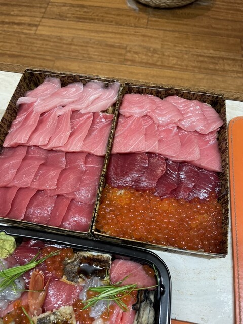 最高のマグロやお刺身と赤酢鮨飯で舌鼓を打つ