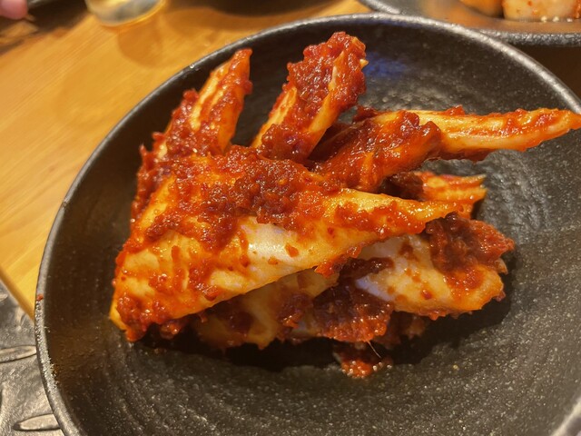 序盤にキムチ、ぐう名物のアサヅケキムチが出てきて、キャベツはぐう同様、食べ放題。コチュジャンマヨネーズが最高です。
