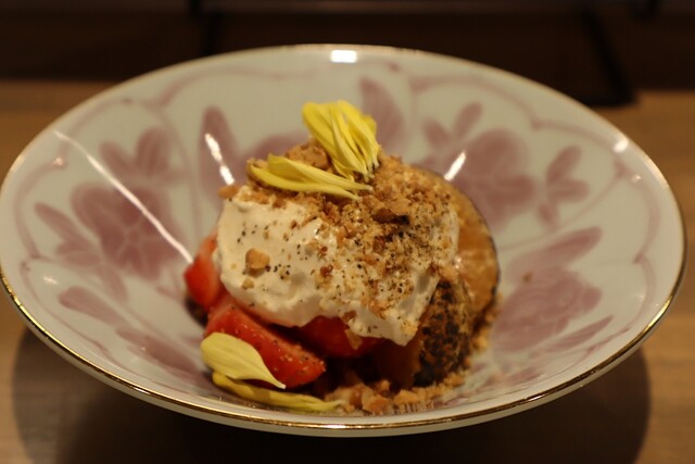 「隠れ家居酒屋」を名乗っておいでですが、予約しておけば会席仕立てにしてくださいます。これが最高でした。器もコースも和をベースにはしておいでですが、食材もソースも幅広く取り入れられて、それがまた絶妙な組み合わせで提供されます。