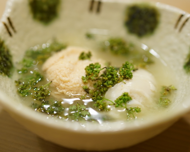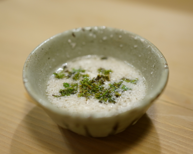 その白子はお汁仕立てで花山椒と一緒に楽しんでいました。