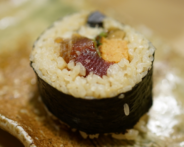 28 太巻き(鰹、穴子、イクラ、玉子焼き、椎茸、干瓢、山牛蒡、葉山葵)
