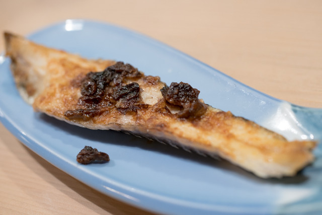 ウロコの付いた硬い皮は食べられないのですが脂の乗った身が面白いです。