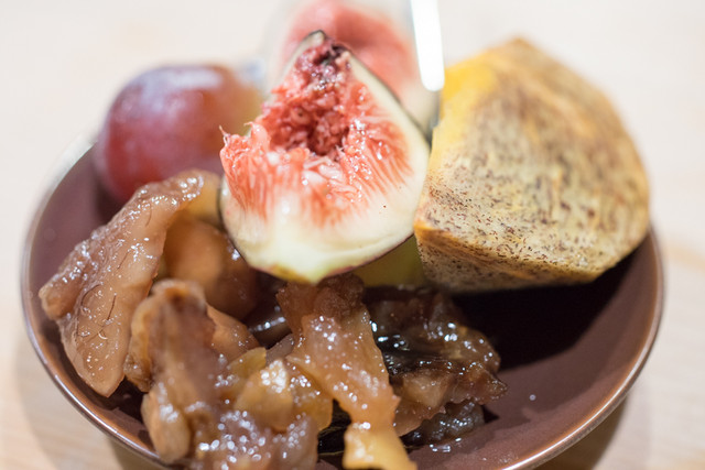 黒あま(柿)、紫苑(葡萄)、ビオレソリエス(無花果)、仏産栗のフルーツ盛り。