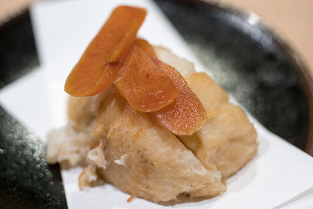 揚げた海老芋にはカラスミが乗っての登場。