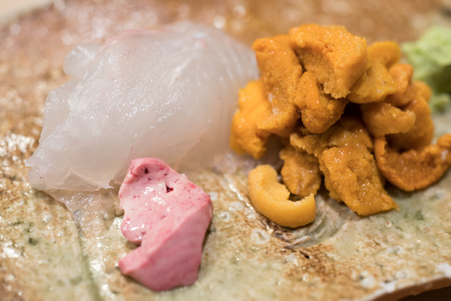 蟹の内子、外子、カニミソ、牡蠣、ヒラメの肝、ウニ、アンキモ、