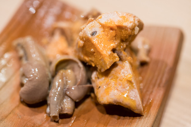 キロ2万円という余市のアンキモ、穴子の肝と肝尽くし。