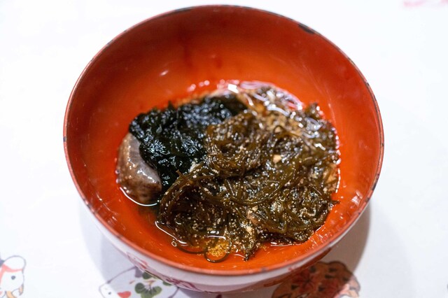 2025.12 土佐酢と出汁で煮込んだ三浦産赤海鼠 浜名湖産アオサ 能登産岩もずく 助子和え