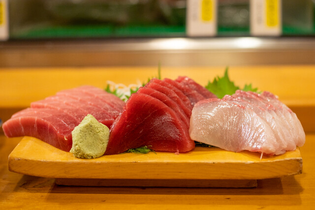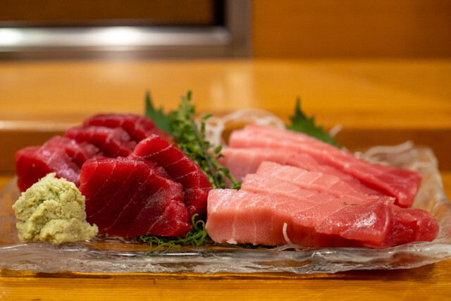 刺し盛りで食べて特に美味しかったマハタ、赤身、中トロを追加注文。