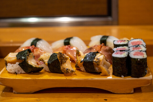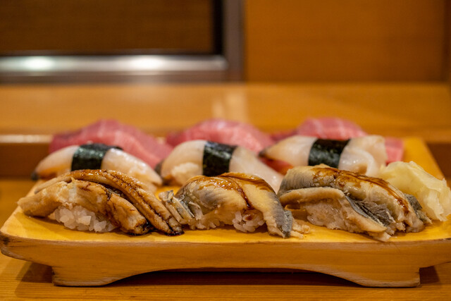 2025.2 握り(カンパチ、天然ひらめ、穴子、釣りアジ)と中トロ鉄火