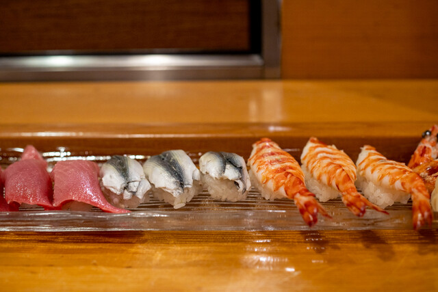 新子、カツオ、〆サバ、イワシ、マハタ、マコガレイ、シマエビ、