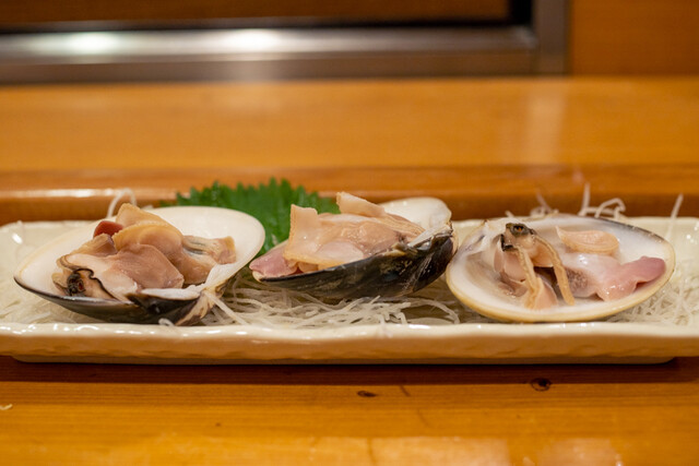 本日の刺し盛りは、赤貝、ツブ貝、エゾイシカゲガイ、白イカ、タコ、