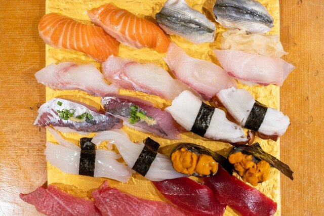 ウニ、カニ爪、本鮪赤身、本鮪中トロ、玉子焼き、計17種類。