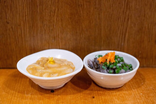 2024.12 自家製塩辛(400円)、なまこポン酢(400円)