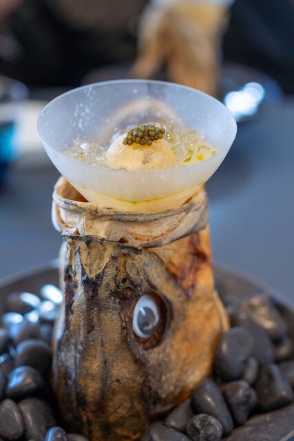 2025.10 鱸(すずき)生ハム かぼちゃペースト 透明トマトジュース バジルオイル N25キャビア