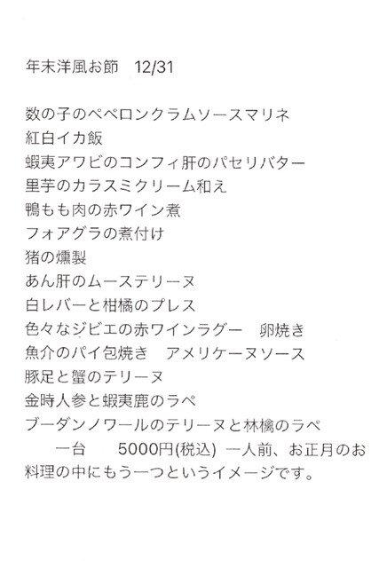 クリスマス用オードブルや正月用の洋風おせちも作るようで気になっています。