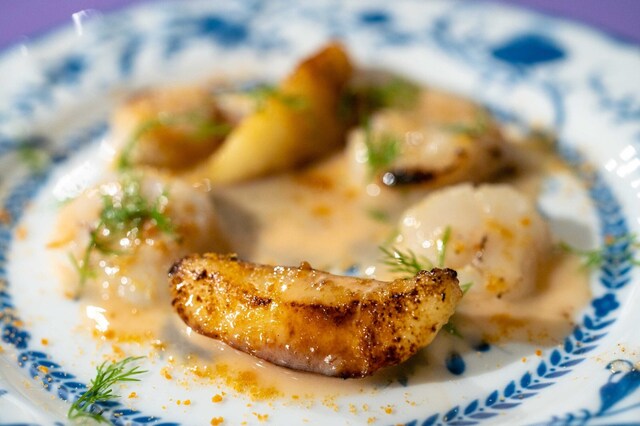 2023.11 炙りホタテ 洋梨のキャラメリゼ ブールブランソース