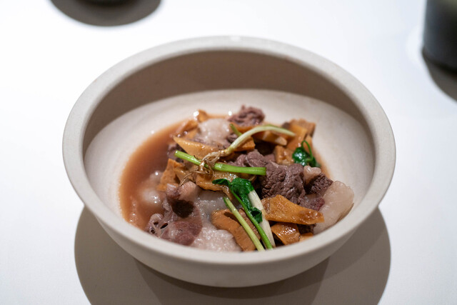 スープ仕立てで登場したのですが中華料理の乾貨を思わせるような味わいに。
