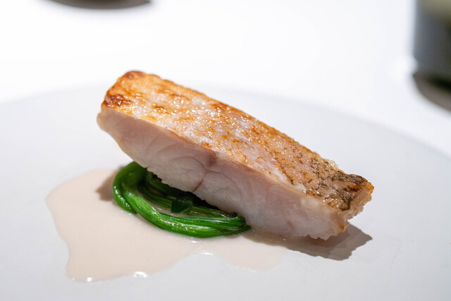 ポワソンに登場した藤本純一さんの白甘鯛がクリアーながら旨味鮮烈で圧巻。