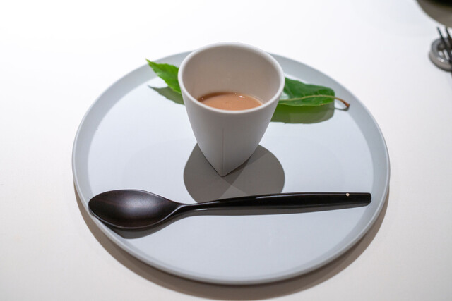フレンチの鮎スープはビスクのような濃厚仕立てが多いですが同店はお椀のよう。