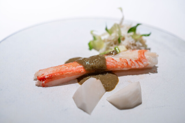2025.11 蒸し立て加能ガニ 蟹味噌ソース 蕪 解し身とプンタレッレ