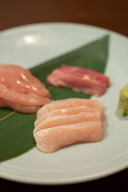 2017.8 比内地鶏 お造り盛り合わせ 三種盛り(1,200円)ムネ、モモ、ササミ