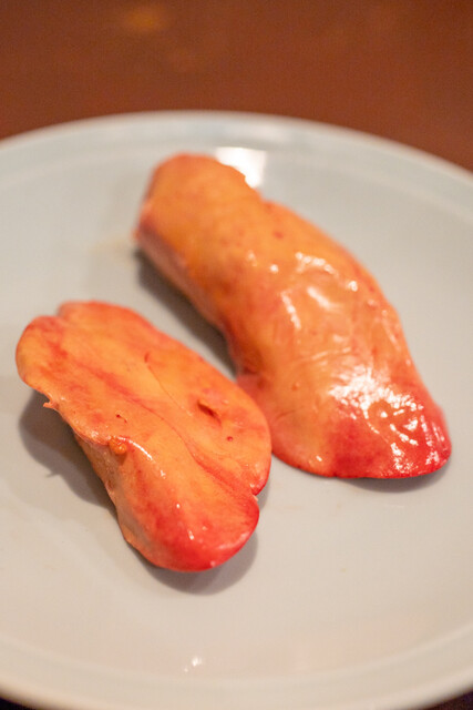 お造り(生肉)より店主の焼き技で火を入れて旨味を活性化させたほうが更に美味しい。