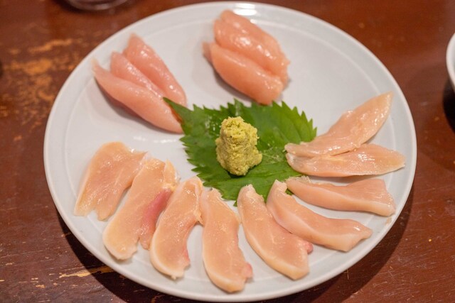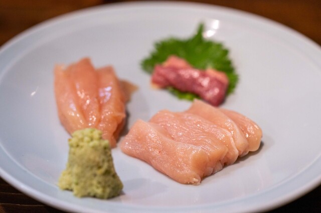 比内地鶏 お造り盛り合わせ 三種盛り(1,200円)ムネ、モモ、ササミ