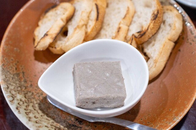 ドリンクメニューにワインが無いのに何故か高級焼き鳥より出来が良いレバパテも必食。