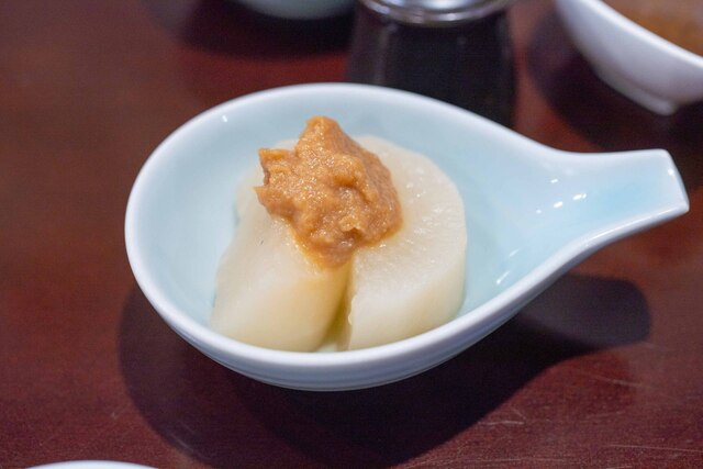 01.ふろふき大根 味噌ダレ乗せ(お通し)