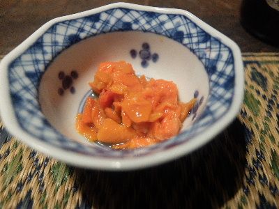 ・乾坤一、阿部勘、お通し、鮭とイクラ(居酒屋一人旅2013年10月)