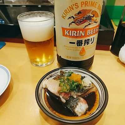 ・ビール、白子ポン酢、おまかせ、北寄貝(居酒屋一人旅2019年3月)