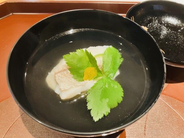 究極的にシャープでクリアなお出汁!ふっくらと潤いのある白甘鯛とのコンビは無敵!