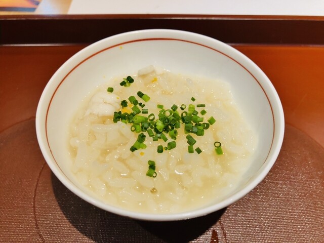 【写真⑫】特製おじや(クエ、鮑、渡り蟹、剥入り)