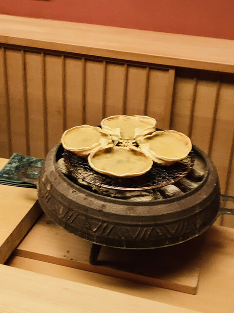 【写真㉓~㉖】間人蟹の蟹味噌酒、炭火焼き間人蟹(3番脚) ☆☆