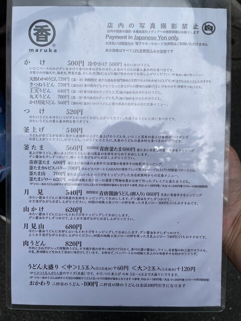 丸天うどん温700円+かしわ天340円(計1,040円)を注文。