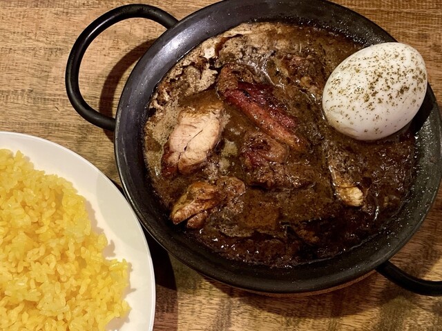 チキンカレー(トマト)1200円+半熟たまご100円(計1300円)です。