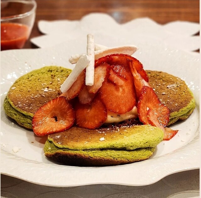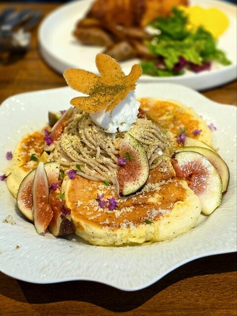 無花果の葉を練り込んだスフレパンケーキに、盛り盛りのフレッシュ無花果と和栗モンブラン