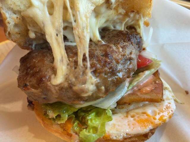 和牛のパティにチーズ・ベーコン・たまご・・