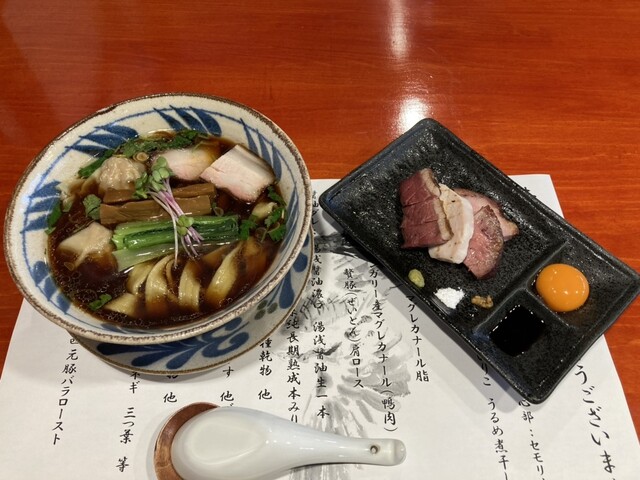 特製中華そば(1,800円)・・・鴨と丸鶏をメインで炊いたスープに天然羅臼昆布や伊吹いりこを合わせ、複数の醤油をブレンドした鴨清湯。動物系×乾物の厚い出汁感を土台に、鴨の旨味や香りが口一杯に広がります。