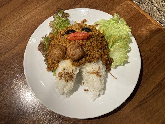 ピグモン / 多々良島ドライカレー with ミートボール(1,705円)・・・ピグモンの運命やいかに?スパイシーに味付けた挽肉カレーです。