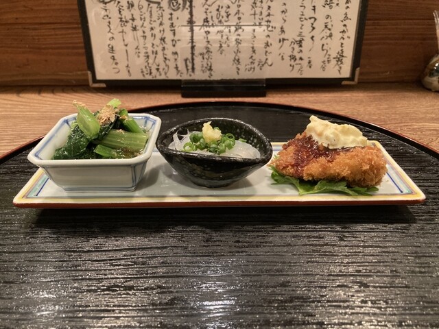 お通しは、いわば物語の序章。冒頭で心をつかむ魅力的な序章があれば、その後の展開も自然と楽しみになるものですよね。こちらのは、料理の温度や味つけのバランスから、お店の哲学が伝わってくるお通しです。お通しの美味しいお店にハズレ無し。良き。