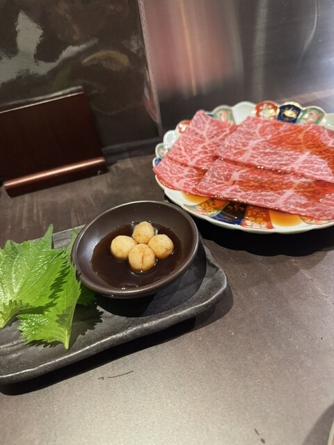 極薄のお肉を焼いて出汁でいただく焼肉で、とても美味しかったです。