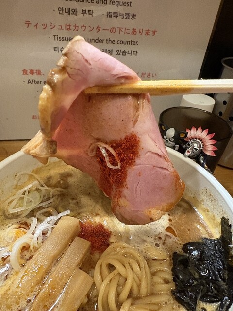 食べ進めるごとにパウダーが溶けて辛さが増すのですがいいアクセントになり最後まで飽きずに飲み干せるスープでした☺️