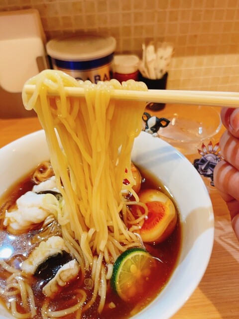 麺屋棣鄂製の細麺を使用しておりモチモチっとしておりコシがあるおいしい麺☺️✨スープの持ち上げも良くて小麦感も感じられますズズズっと啜り心地も良い麺です✨