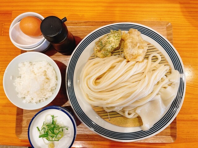 かしわ天(ざるうどん)にたまごかけご飯か