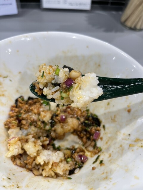 麺の下には特製ピリ辛醤油ダレが沈んでおりちょっと舐めるとほんとピリッとした辛味を感じる醤油ダレでごま油の香りも心地よくこのタレだけでも美味しかったです☺️✨