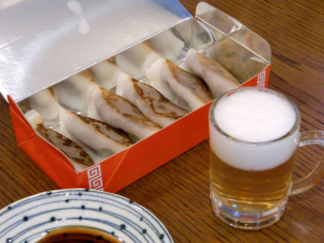 最初はこちらの写真、餃子そっくり饅頭とビールそっくりゼリーを