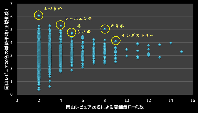 岡山レビュア20名口コミ数毎単純平均(正規化後)