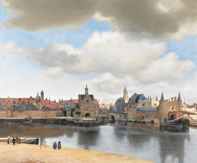 ふぅ、不思議と以前オランダのマウリッツハウス美術館に伺った際に「真珠の耳飾りの少女」の正面に飾られている同じくフェルメールの「デルフトの風景」を思い出しました。「真珠の耳飾りの少女」を観に行ったんですけどね、それまでに何度も観たということもあって、結局強烈に惹きつけられたのは「デルフトの風景」でした。写真や画像で見るのと本物には天地の違い。一見静かで同じようでいて、空/港/建物/海が見事に別々のタッチで描きわけられていて、とてつもなく味わい深い作品です。