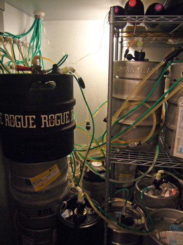 カウンターの後ろに聳える大きな冷蔵庫兼サーバで、生ビールを常時23種類も提供。
